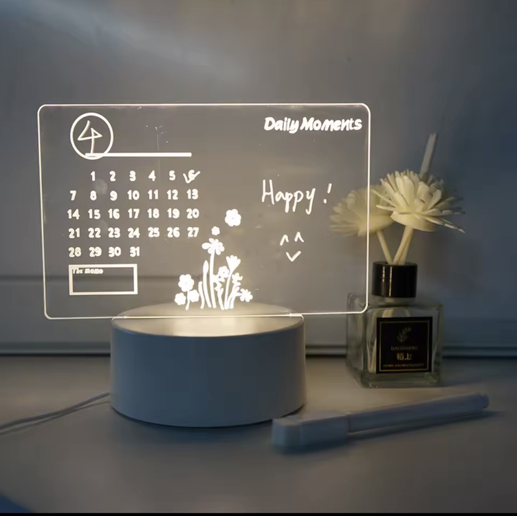 This package includes an LED night-lamp calendar and a smooth-writing neon pen. Perfect for planning, reminders, and adding a glowing aesthetic to any room.